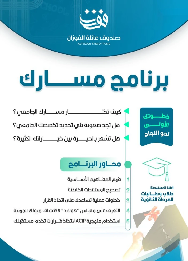 بهدف مساعدتهم على اختيار مسارهم الجامعي بثقة ووعي، واتخاذ قرارات تعليمية مدروسة تسهم في بناء مستقبلهم الأكاديمي والمهني.